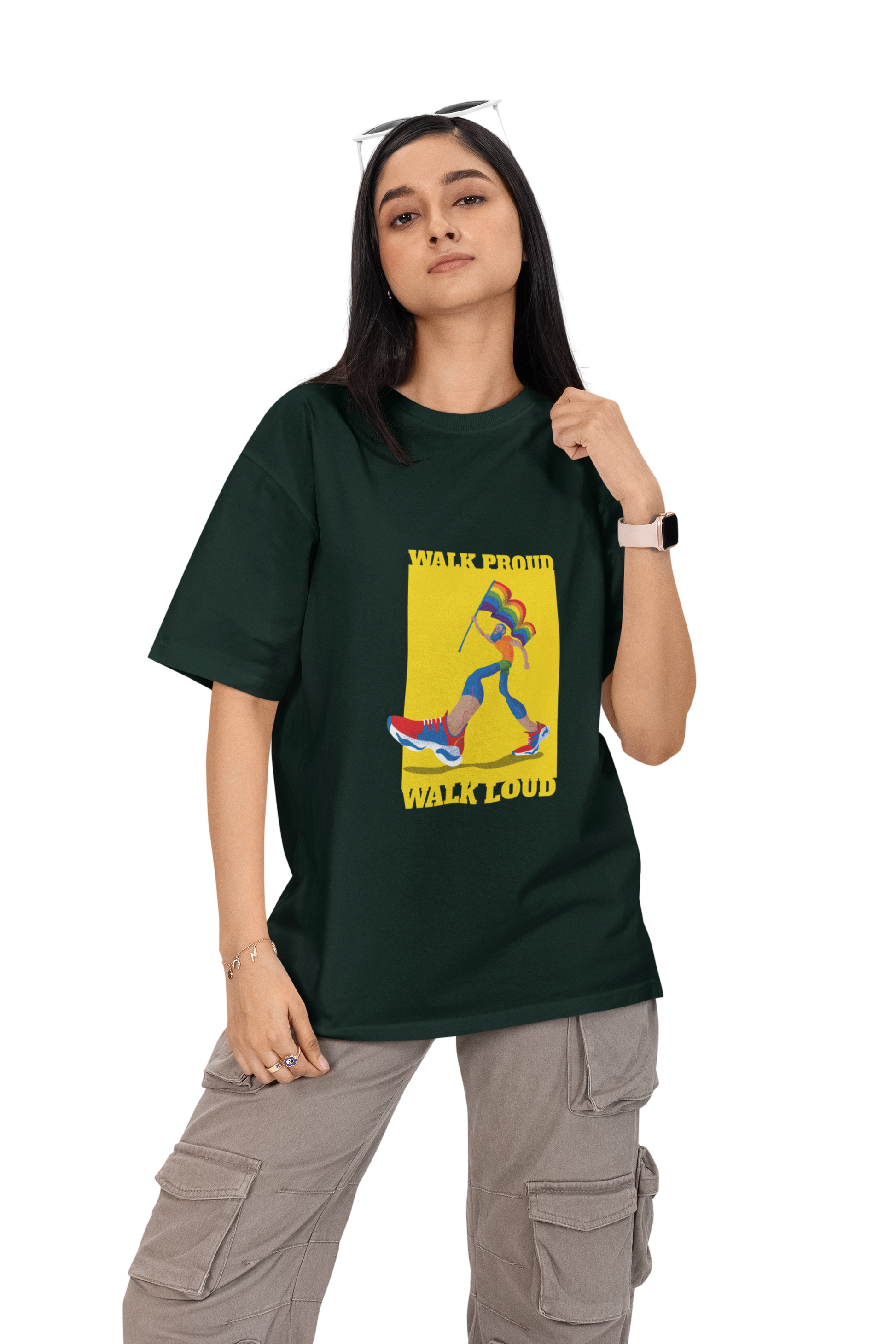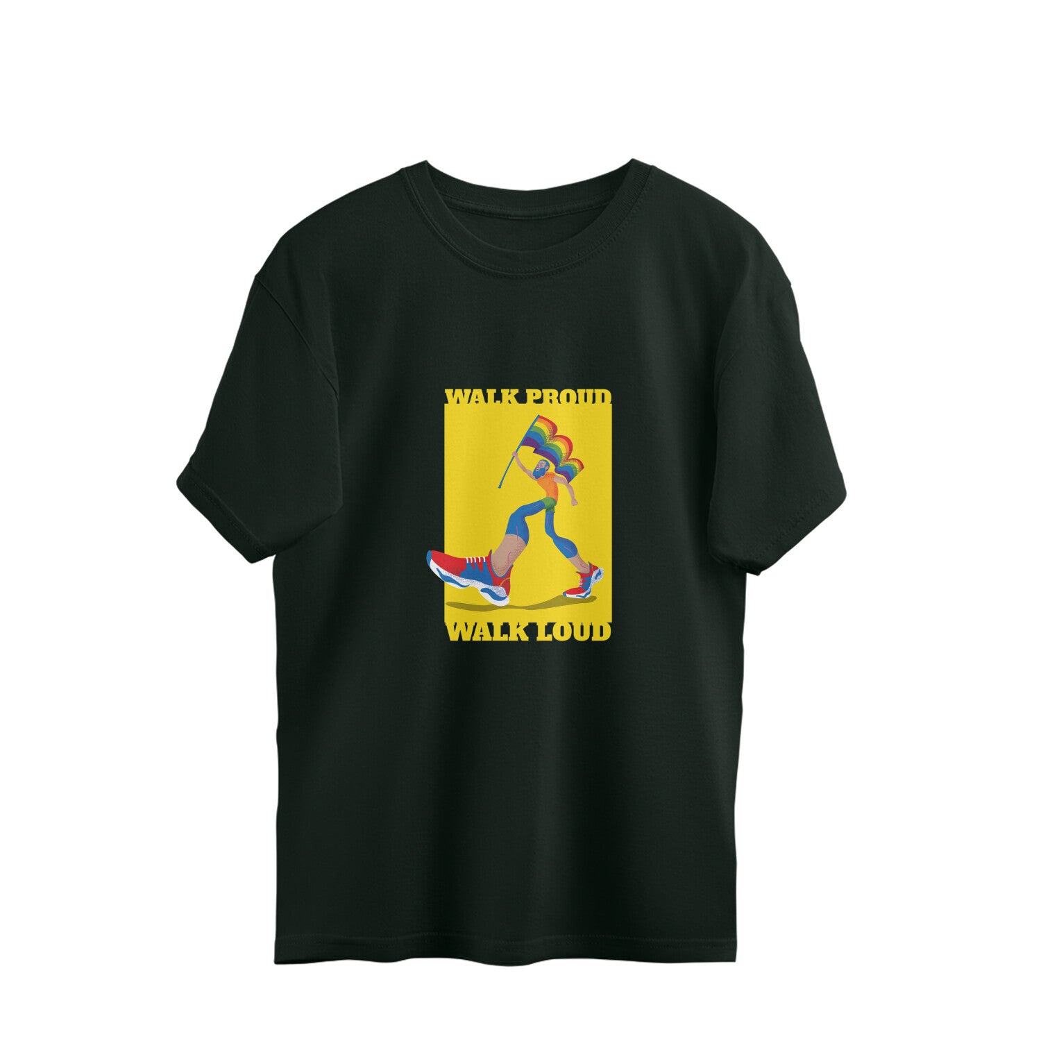 Oversized Pride T-Shirt – “Walk Proud, Walk Loud” LGBTQ+ Design | Unisex Loose Fit | 100% Combed Cotton | Sustainable Print | Made in India