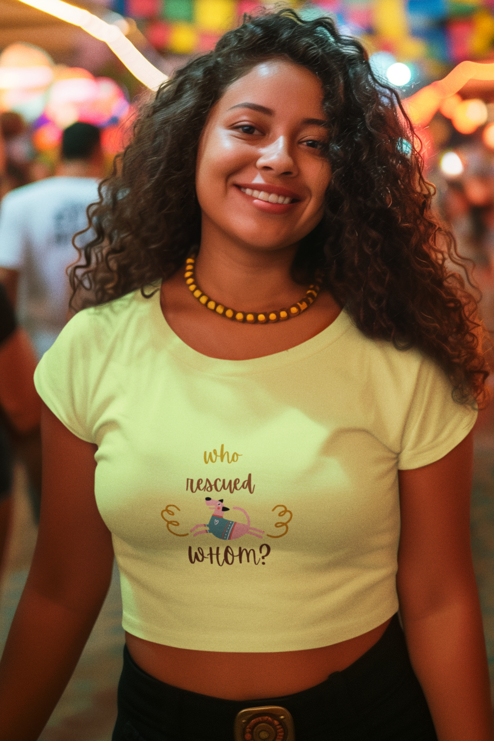 Who Rescued Whom Dog Lover Crop Top, 100% Cotton, White, 180 GSM (3 colours x 6 sizes)